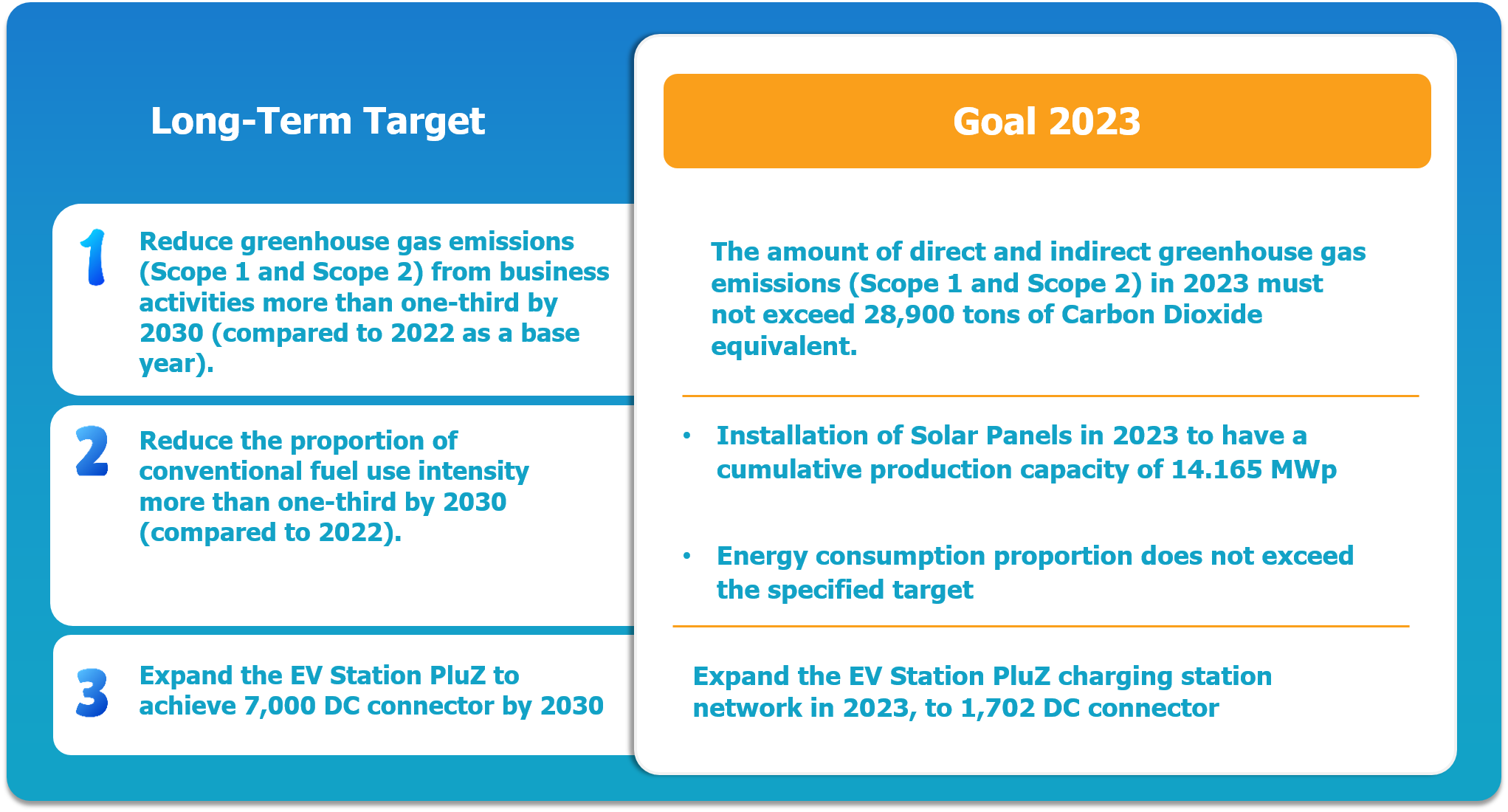 Global warming and climate change problems are drastic and affecting to the way of life of humans and other living things. Thus, the global including Thailand put the emphasis on those issues. In doing so, requesting cooperation and intensive law and regulation are applied for pushing the emphasis on those problems. OR, as the oil and retail business, is aware of the importance of such problems. Therefore, the strategy and operational plan for OR SDG (Small, Diversified, Green) or creating a sustainable future in OR’s style has been established in order to effectively achieve the OR 2030 Goals. By creating opportunities for a clean society and promoting green business for a sustainable environmental future, with a commitment to support a sustainable low-carbon society and achieve carbon neutrality by 2030 and net zero emissions by 2050. OR aims to be a part of the solution and reduce the impact of climate change from its business operations