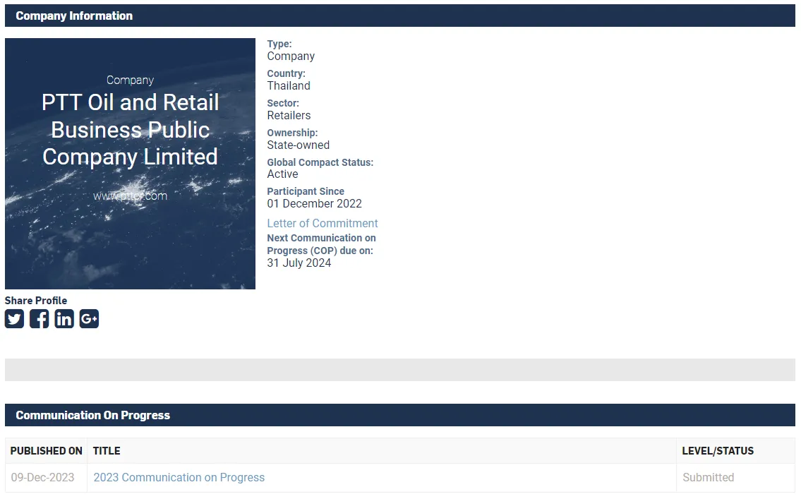 1. OR becomes a member of UNGC (United Nations Global Compact Membership) from December 1st, 2022. This makes OR operates in accordance with the 10 principles of UNGC. More details of the Declaration of Intent for Participation can be found in the United Nations Global Compact Communication on Progress (CoP) 2023.