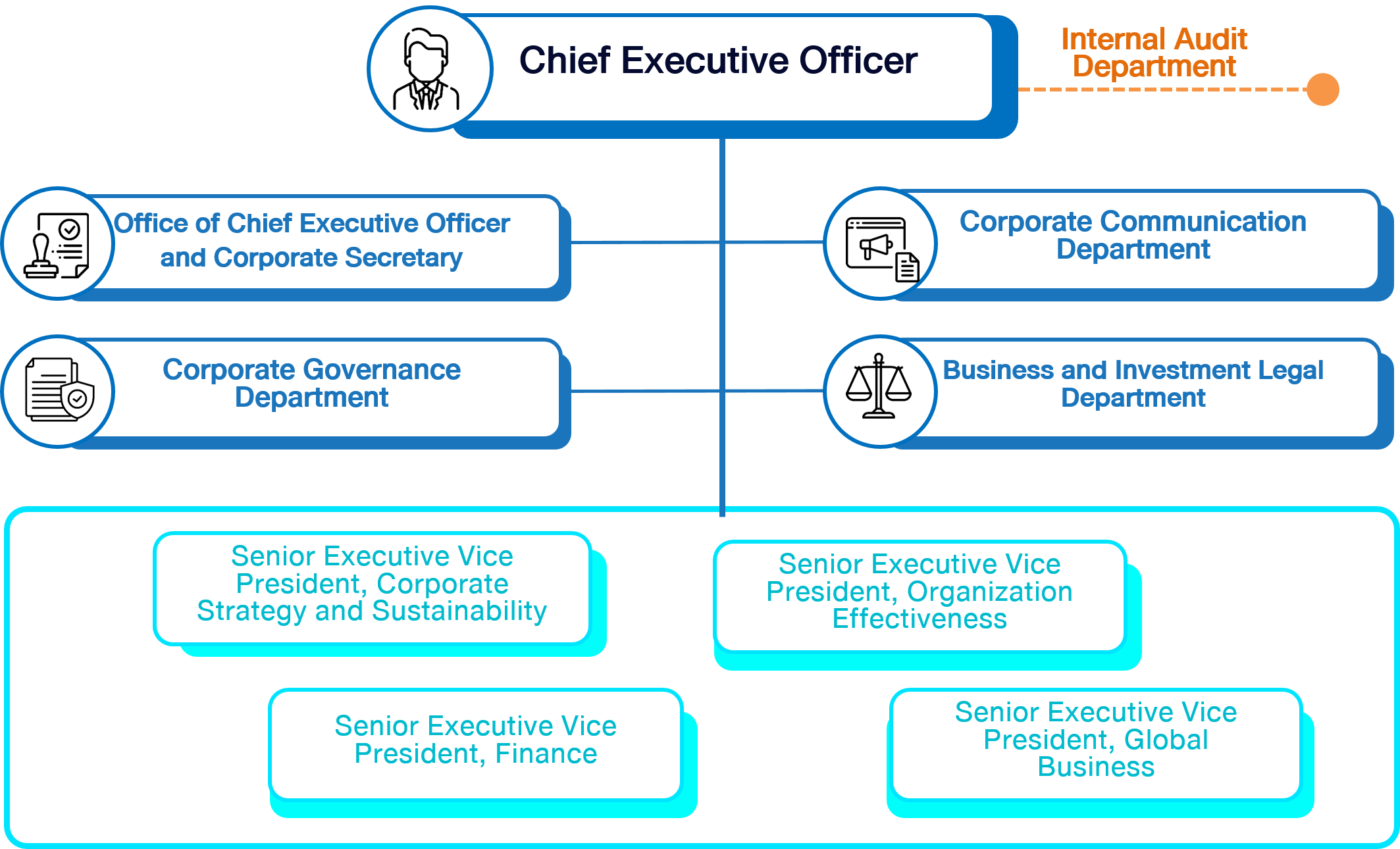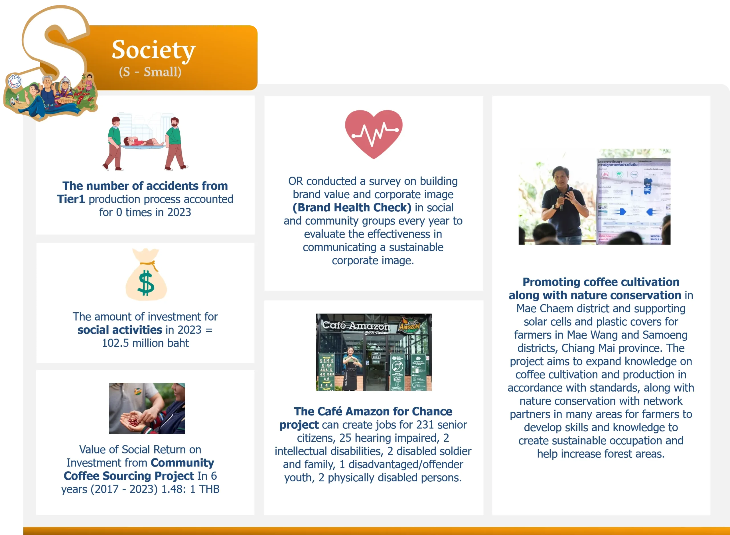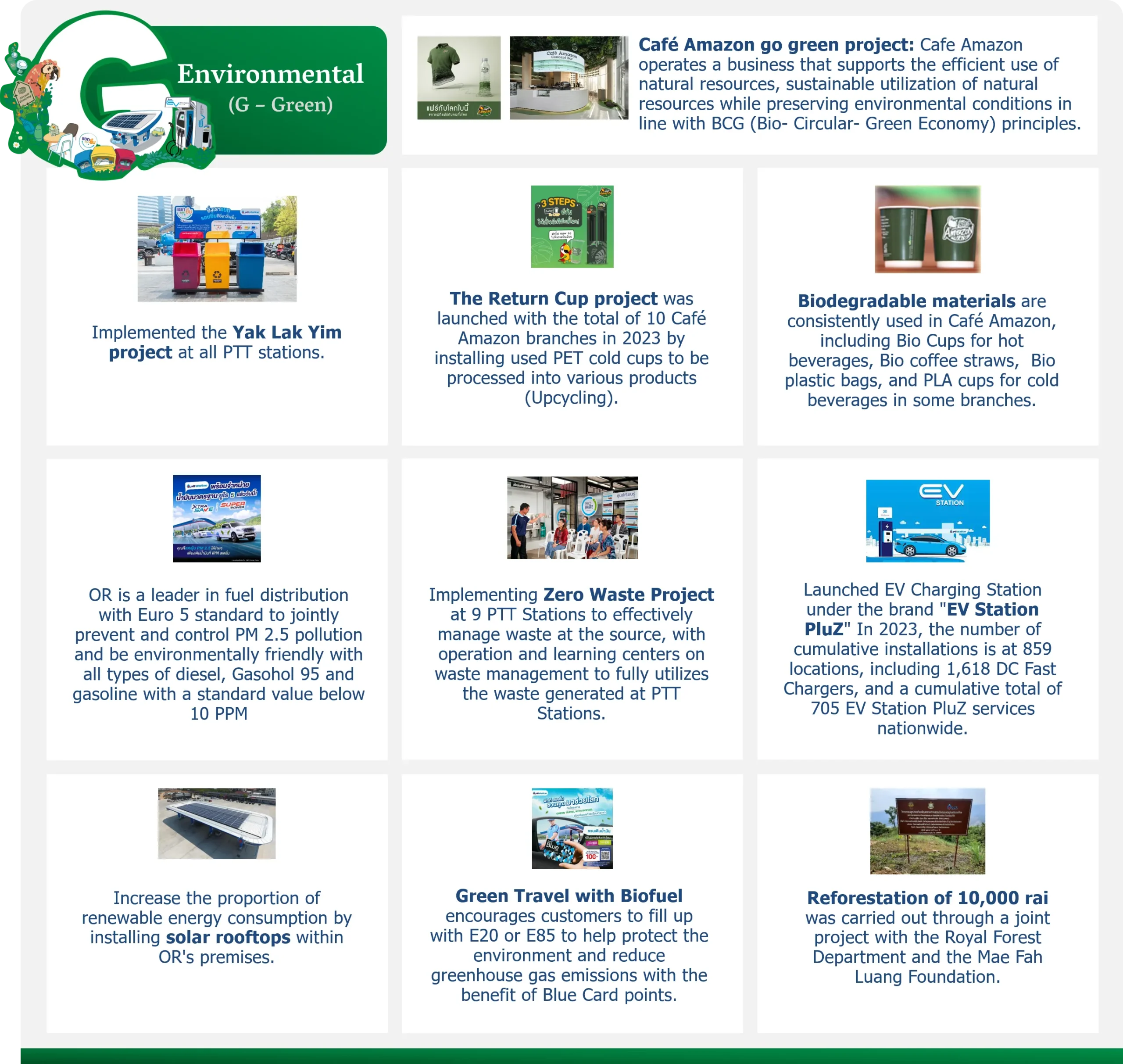 OR established Sustainability Management Policy as a framework for sustainable operation of the organization. This is to achieve the targets to operate transparent business, comply with relevant laws, raise sustainability awareness among stakeholders throughout OR’s value chain, promote innovation and technology development, and enhance the quality of life of communities. OR therefore established the Sustainable Development Committee chaired by the Senior Executive Vice President of Corporate Strategy and Sustainability, and includes executives from all business units joining the committee. The committee is responsible for approving OR’s strategic plans, sustainable business plans, and action plans, which must adhere to PTT Group’s policies, national and international corporate sustainability management standards; approving and reviewing OR sustainability material issues and encourage relevant business units to support the operations in according to the sustainability strategy, consideration and approving on OR Sustainability Report and reporting the progress of OR Sustainability Report to the OR Management Committee (ORMC) and the OR Corporate Governance and Sustainability Committee (ORCGS) quarterly. In addition, OR assigned Sustainability and Quality, Safety, Health and Environmental Department to be the main department to drive the OR corporate sustainability programs.