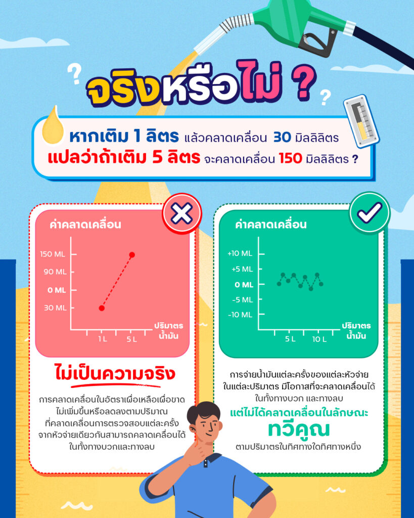 จริงหรือไม่? หากเติม 1 ลิตรแล้วคลาดเคลื่อน 30 มิลลิลิตร แปลว่าถ้าเติม 5 ลิตรจะคลาดเคลื่อน 150 มิลลิลิตร