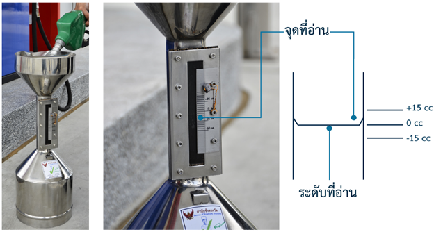 - ตรวจสอบที่ปริมาตร 5 ลิตร ให้อัตราเผื่อเหลือเผื่อขาด สำหรับให้คำรับรองที่ ±15 มิลลิลิตร (± 0.3%)