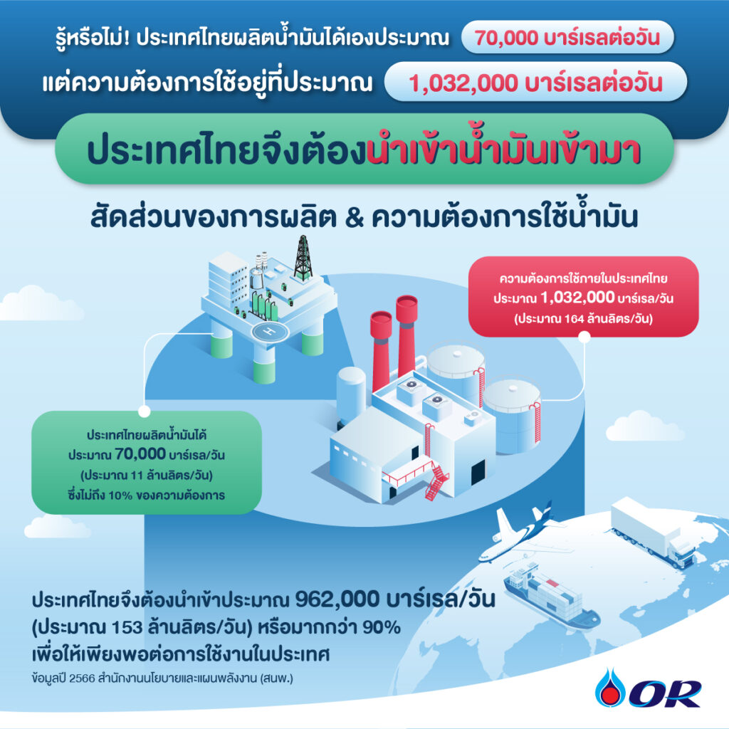 แม้ประเทศไทยจะมีแหล่งขุดน้ำมันดิบเอง แต่ปริมาณที่ขุดได้รองรับปริมาณที่ต้องใช้ต่อวันได้ไม่ถึง 10% โดยผลิตได้เพียงประมาณ 70,000 บาร์เรลต่อวันในขณะที่ปริมาณการใช้งานอยู่ที่ประมาณ 1,032,000 บาร์เรลต่อวัน (ข้อมูลปี 2566 อ้างอิง สนพ.) ไทยจึงต้องนำเข้าน้ำมันดิบมากกว่า 90% เพื่อให้เพียงพอต่อความต้องการใช้งานทั้งประเทศ ดังนั้นราคาน้ำมันไทยจึงผันผวนตามราคาน้ำมันตลาดโลก เมื่อราคาน้ำมันดิบในตลาดโลกสูงขึ้น ราคาน้ำมันที่นำเข้าในประเทศไทยจึงสูงขึ้นตามไปด้วย