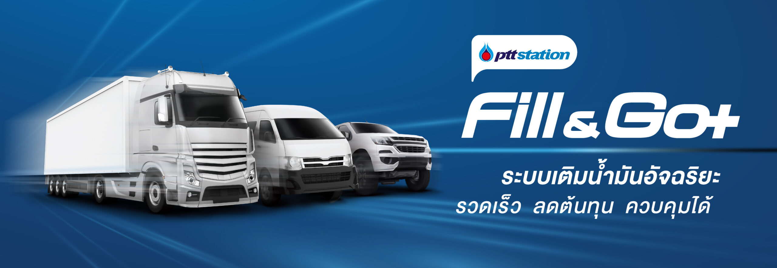 Fill & Go+ (ฟิล แอนด์ โก พลัส) เป็นนวัตกรรมการชำระค่าน้ำมันสำหรับลูกค้านิติบุคคลแบบไร้สัมผัส ลูกค้าจะได้รับความสะดวก และปลอดภัย อีกทั้งยังมีระบบอ่านทะเบียนรถ (LPR : License Plate Recognition) ระบบตรวจสอบข้อมูลการเติมน้ำมันได้แบบ Real-time และสามารถตั้งกฎการเติมน้ำมัน ผ่านระบบ Web-portal ที่เป็นเครื่องมือที่สำคัญสำหรับองค์กรในการบริหารหรือควบคุมการเติมน้ำมันของรถบริษัทได้อย่างสะดวกมากยิ่งขึ้น โดยสามารถใช้บริการได้ที่สถานีบริการ พีทีที สเตชั่น กว่า 2,000 แห่งทั่วประเทศ