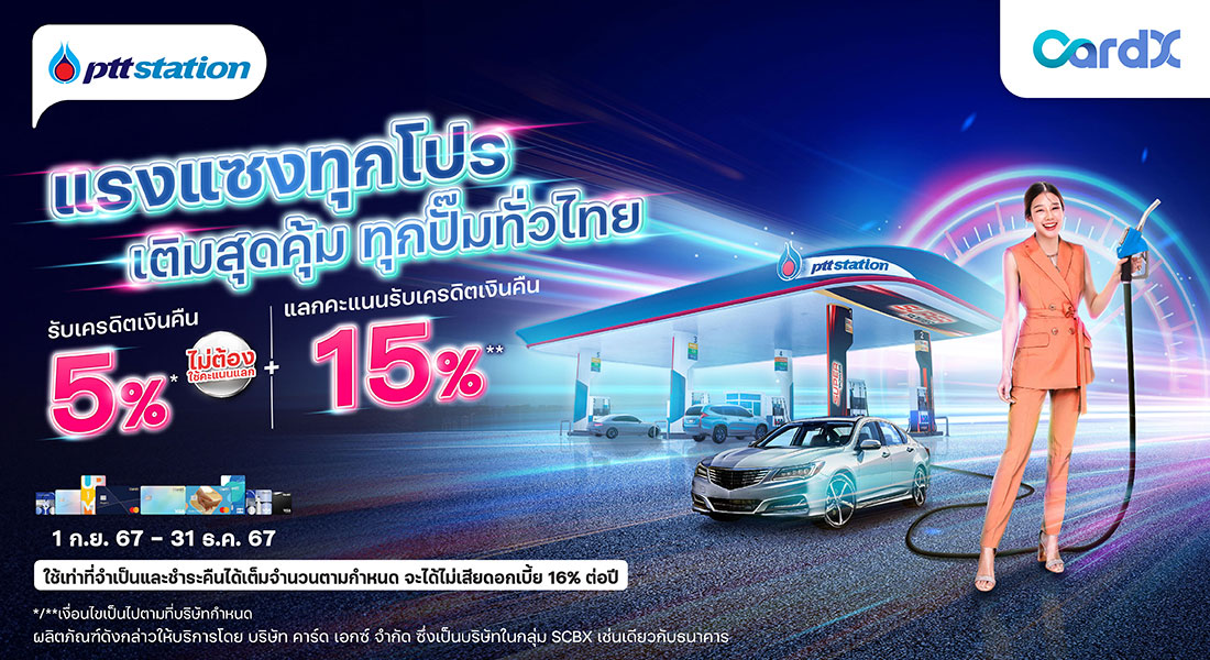 🔥แรงแซงทุกโปร!! 🔥 เติมน้ำมันที่ พีทีที สเตชั่น คุ้มทั่วไทย กับบัตรเครดิต CardX