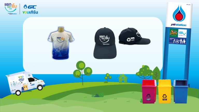 - การคัดแยกขยะที่สามารถรีไซเคิลได้ เช่น ขวดน้ำ กระป๋อง ขวดแก้ว ลังกระดาษ เป็นต้น ผ่านโครงการแยกแลกยิ้ม x GC YOUเทิร์น ส่งต่อขยะที่สามารถรีไซเคิลได้เข้าสู่โรงงานรีไซเคิลที่มีมาตรฐาน