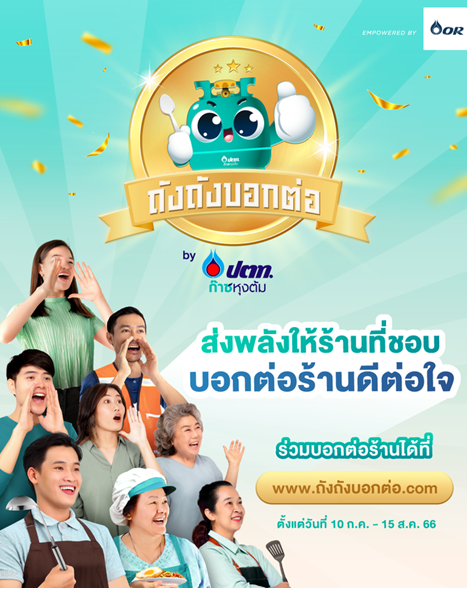 ในปี 2566 OR ได้สร้างสรรค์กิจกรรม ‘ถังถังบอกต่อ’ เพื่อเสริมสร้างความสัมพันธ์กับลูกค้าก๊าซหุงต้มกลุ่มร้านอาหาร โดยกิจกรรมดังกล่าว เปิดรับรายชื่อร้านอาหารจากทั่วประเทศไทยที่ได้สร้างความประทับใจให้กับผู้บริโภค ทั้งร้านที่ใช้ผลิตภัณฑ์ก๊าซหุงต้ม ปตท. อยู่แล้ว รวมถึงร้านที่ใช้ผลิตภัณฑ์ก๊าซหุงต้มยี่ห้ออื่น และรวบรวมรายชื่อร้านที่ได้รับการเสนอชื่อ พร้อมส่งคณะกรรมการเข้าประเมินร้าน โดยพิจารณาเกณฑ์ด้านความอร่อยของอาหาร ความคุ้มค่า ความสะอาด การบริการ และเรื่องราวประทับใจ ร้านที่ผ่านเกณฑ์ประเมินจะได้รับสิทธิพิเศษ ประกอบด้วย ของพรีเมียมสนับสนุนร้าน (สติกเกอร์ สื่อส่งเสริมการขายอื่น ๆ) สิทธิใช้ก๊าซหุงต้ม ปตท. ฟรี 6 เดือน และประชาสัมพันธ์ร้านผ่านช่องทางประชาสัมพันธ์ของก๊าซหุงต้ม ปตท. ทั้งนี้ OR ได้รับการเสนอชื่อจากร้านทั้งหมด 560 ราย โดยมีร้านอาหาร 151 รายที่ได้ผ่านเกณฑ์คัดเลือก