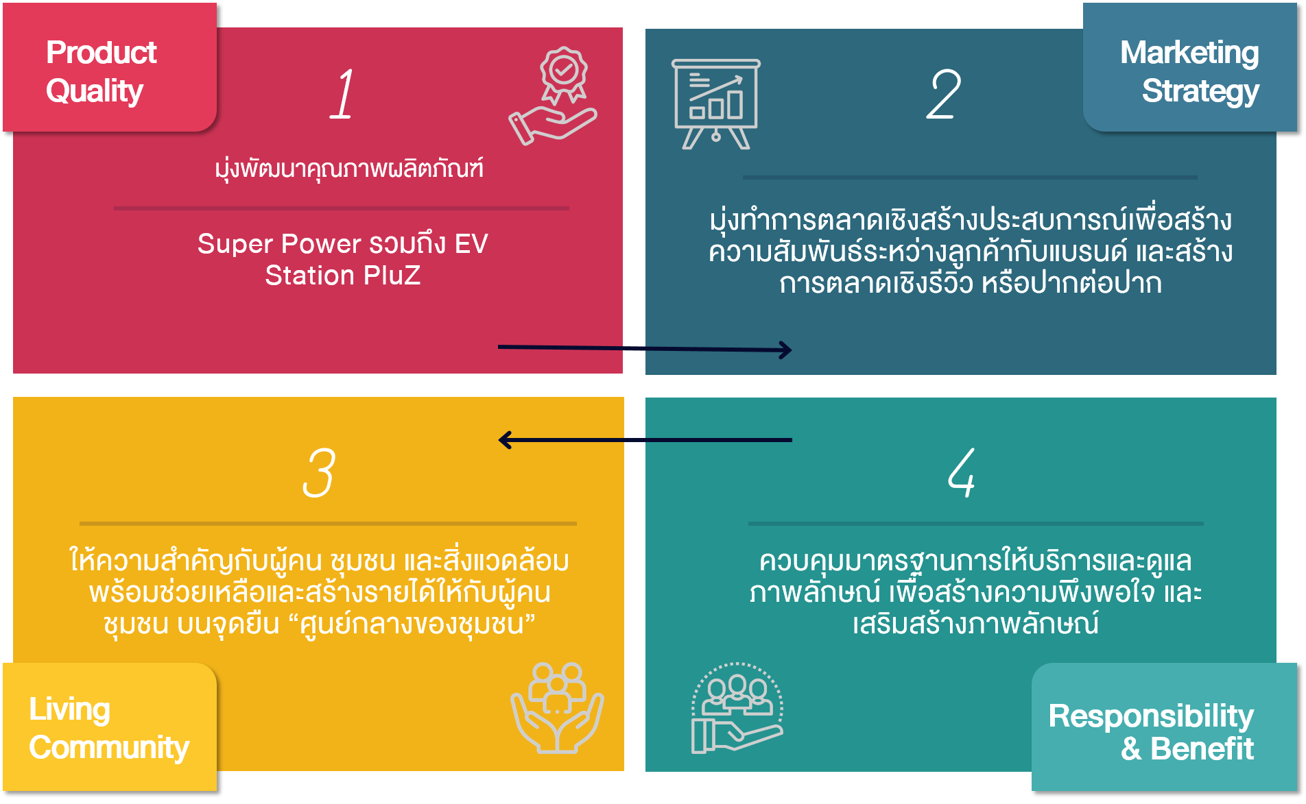 จากความตั้งใจของ OR ที่จะทำให้ PTT Station เป็นพื้นที่ที่เติมเต็มทุกความสุขให้ทุกคนได้อย่างแท้จริง พร้อมการเป็นผู้นำทางด้านพลังงาน ในปี 2566 ทิศทางและกลยุทธ์การดำเนินธุรกิจ PTT Station มุ่งให้ความสำคัญกับกรอบการทำงานทั้งด้านคุณภาพและการบริการ ส่งเสริมความเป็นอยู่ที่ดีร่วมกับผู้มีส่วนได้เสียและสังคม 4 ด้าน ดังนี้