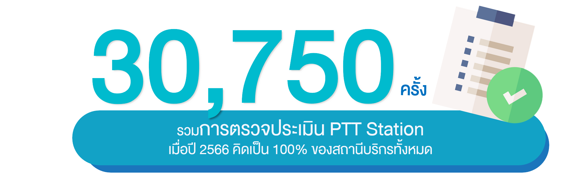ในปี 2566 มีการเข้าตรวจประเมิน PTT Station ทั้งหมด 30,750 ครั้ง ประกอบด้วยการตรวจโดยทีม Mobile Audit 24,600 ครั้ง และทีม Mystery Shopper 6,150 ครั้ง ทั้งหมดเท่ากับสถานี 2,050 แห่ง (100% ของสถานีทั้งหมด) และ RM 160 แห่ง (100% ของ RM ทั้งหมด) ที่ได้รับการตรวจประเมินผ่าน Mobile Audit และ/หรือ Mystery Shopper อย่างน้อยหนึ่งครั้งในรอบปีที่ผ่านมา