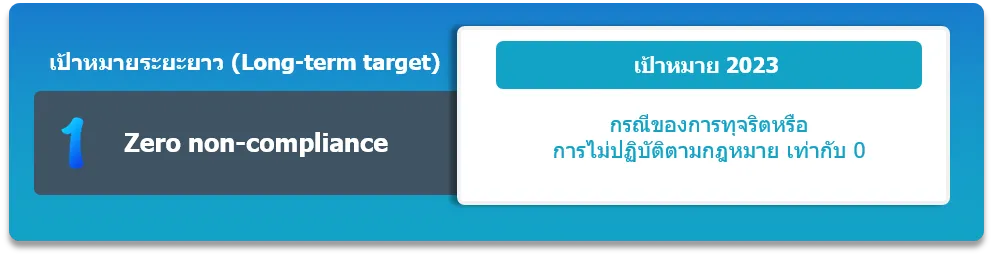 - จากการดำเนินงานอย่างต่อเนื่องของ OR เพื่อสนับสนุนการกำกับดูแลกิจการที่ดี และการดำเนินงานตามกฎเกณฑ์ ทำให้ตลอดปี 2566 พบว่า การดำเนินธุรกิจของ OR ไม่มีกรณีการละเมิดกฎหมาย ส่งผลให้ไม่มีเหตุการณ์หรือค่าปรับที่เกิดจากการดำเนินงานที่ละเมิดกฎหมายทั้งในด้านเศรษฐกิจ สังคม และสิ่งแวดล้อม