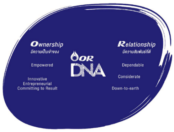 OR สร้างวัฒนธรรมองค์กรและส่งเสริมความผูกพันต่อองค์กรผ่านการสื่อสารกับพนักงานอย่างต่อเนื่องและการจัดกิจกรรมสานสัมพันธ์ต่าง ๆ สำหรับการสื่อสาร OR จัดทำและเผยแพร่สื่อเกี่ยวกับค่านิยมขององค์กร เช่น คู่มือวัฒนธรรมองค์กร OR DNA (OR DNA Culture Guidebook) มีการอบรมพนักงานใหม่เรื่อง OR DNA มีการส่งข่าวสารและข้อมูลให้แก่พนักงานเป็นประจำผ่านอีเมล (E-mail) กลุ่มไลน์ (Line Group) อินทราเน็ต (Intranet) และมีการจัดงาน CEO พบพนักงาน และผู้บริหารระดับรองประธานเจ้าหน้าที่บริหารพบพนักงานแต่ละสายงาน เพื่อให้พนักงานสามารถพบปะสื่อสารกับผู้บริหารได้อย่างใกล้ชิด ด้านกิจกรรม มีการจัด Outing ประจำปี กิจกรรมสานสัมพันธ์ภายในสายงาน รวมถึงกิจกรรมวันครอบครัวเพื่อส่งเสริมความสัมพันธ์อันดีระหว่างผู้บริหาร พนักงาน และครอบครัวของพนักงาน สร้างความรู้สึกเสมือนเป็นครอบครัวเดียวกัน มีการมอบรางวัลพนักงานดีเด่นให้แก่พนักงานที่มีผลการปฏิบัติงานอันโดดเด่นและแสดงพฤติกรรมในการทำงานที่สอดคล้องตาม OR DNA รวมถึงมีการมอบของที่ระลึกให้กับพนักงานที่ปฏิบัติงานนาน ครบตามระยะเวลาที่องค์กรกำหนด (อายุการทำงานครบ 10/15/20/25/30/35/40 ปี) ภายใต้วงเงินงบประมาณที่ได้รับการอนุมัติให้ดำเนินการจากคณะกรรมการบริษัทเพื่อเป็นการตอบแทนคุณงามความดีของพนักงานที่ได้เสียสละปฏิบัติหน้าที่อย่างต่อเนื่องด้วยความผูกพันให้กับองค์กรมาเป็นระยะเวลานาน